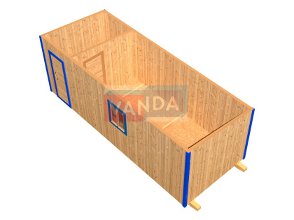 При строительстве деревянной бытовки каркас делается из деревянного бруска 40х50 мм. или 40х100 мм. Снаружи обшивается оцинкованным профлистом, профлистом с полимерным покрытием, плитой OSB или имитацией бруса. Внутренняя отделка – ДВП-Оргалит, вагонка или плита OSB. Черновые полы доска 20 мм. Чистовые полы – ДСП строительное 16 мм. Стропила из доски 40х150. Кровля – оцинкованный профлист или профлист с полимерным покрытием. Утепляется мин. ватой или базальтовой ватой весь периметр бытовки. Прокладывается пароизоляция. Окна и двери деревянные.